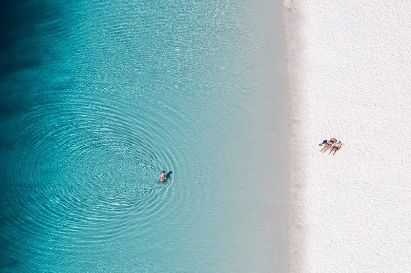 砂のくぼみに雨水がた溜まってできる湖は世界の半数がこの島に存在し、真っ白な砂浜に囲まれた透明度の高いエメラルドグリーンの湖は飛び込まずにはいられません。
