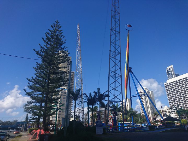 ゴールドコースト地元の人で知らない人はいない絶叫体験アトラクションがスリング・ショット(Sling Shot)。