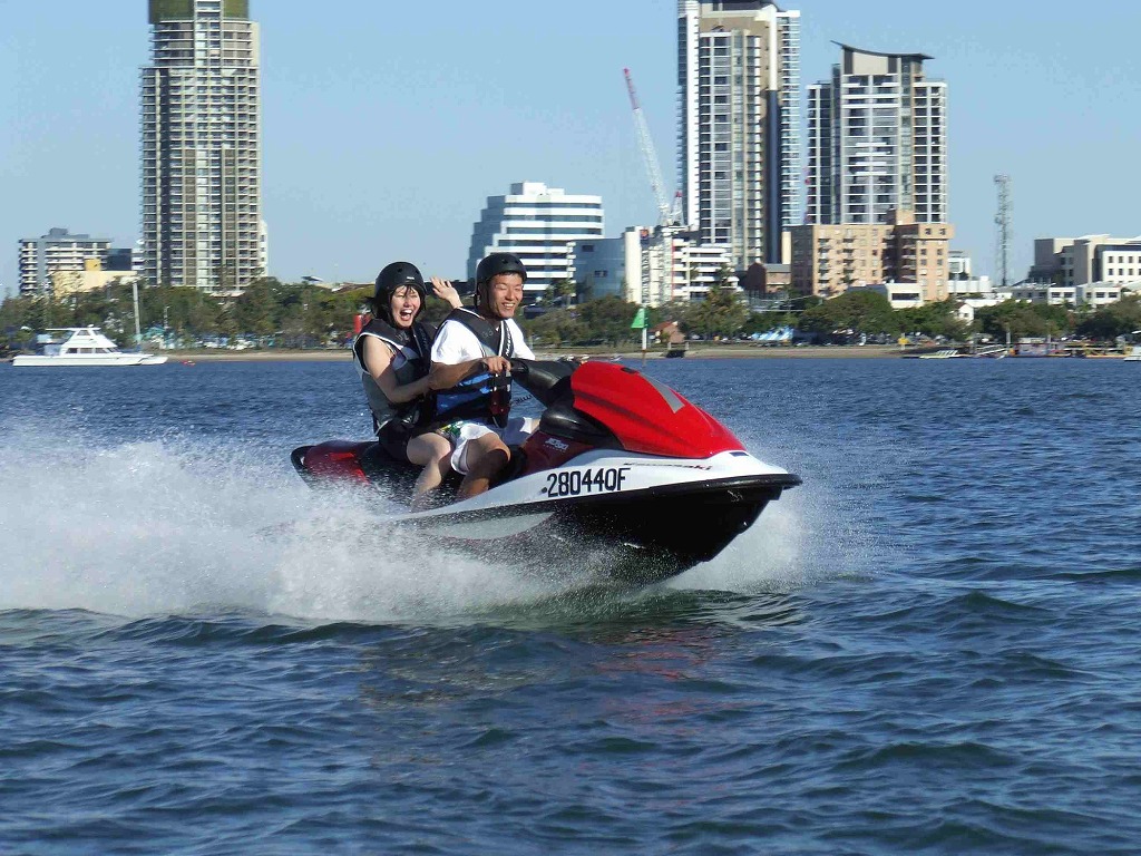 日本ではインストラクター同乗でないと乗れないジェットスキーも、ここゴールドコーストでは皆さんがご自身で運転出来ます。