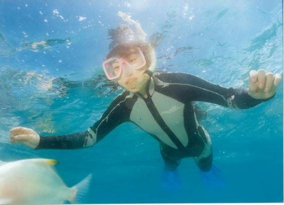 ダイビングはちょっと心配、自信がないと言う方にお勧めなのが、シュノーケリング。シュノーケリングでも十分ダイヤモンドフィッシュの大群に出会えることが可能で、そして自分の手から餌付けも出来ちゃいます♪