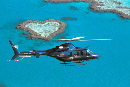 基本のツアーは往復ともクルーズ船利用ですが、行き、又は帰りをヘリコプターを利用するツアーも人気があります。上空からハート・リーフ、ホワイトヘブン・ビーチのヒル・インレットを見ることができる。この片道ヘリコプターを利用するツアーは、ハミルトン・アイランド・エアーという会社が運行しています。
