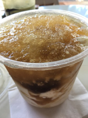 上のかき氷がほんのり甘く黒糖味で美味しい!!