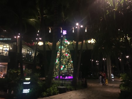 ロイヤルハワイアンセンターのツリーも綺麗に輝いています。