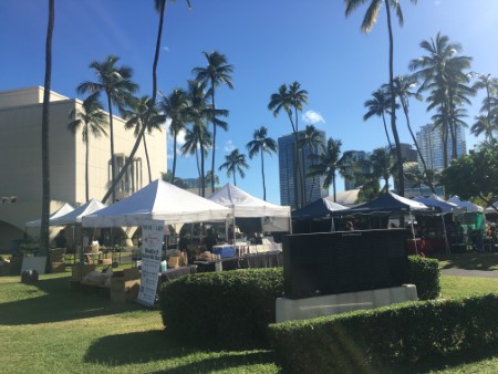 水曜日の昨日は、NBCコンサートホール横の芝生で開催されている「ホノルル・ファーマーズ・マーケット」に行って来ました。