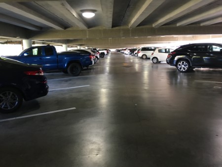 いつも停める1階の駐車場が開いてなくて、2階に停めました。