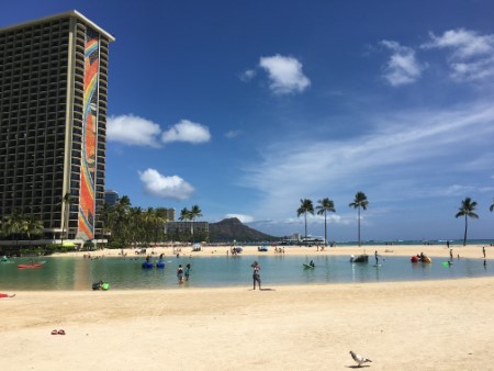 「ぺスカワイキキビーチ」でののんびり豪華ランチの後は、腹ごなしの散歩に!