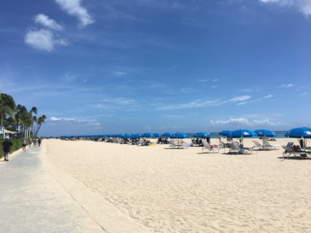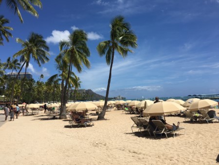 ハレコア前のビーチにもビーチパラソルがいっぱい並んでいました。