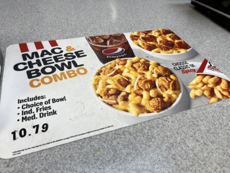 今日の目的は、マカロニチーズ・ボウル コンボ $10.79-