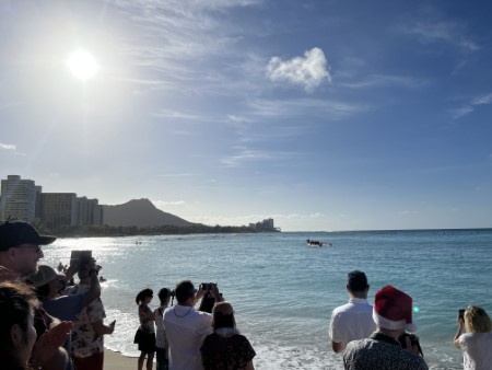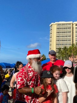 12月10日(土曜日) 今年もサンタさんが、カヌーに乗って、ワイキキビーチに到着しました。