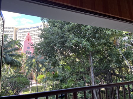 ロイヤルハワイアンホテルの中庭ビュー