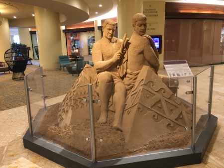 ホテルのロビーの砂の彫刻も健在!!