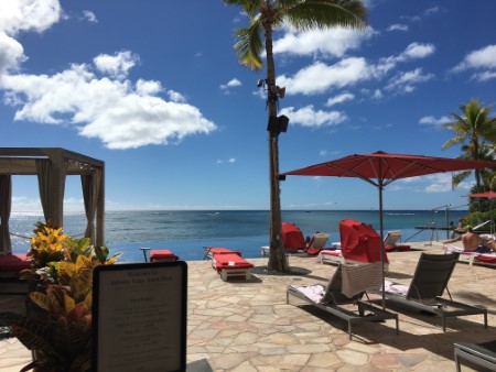 インフィニティ・プールのビーチチェアーもソーシャルディスタンスを考慮してゆったり設置してあります。