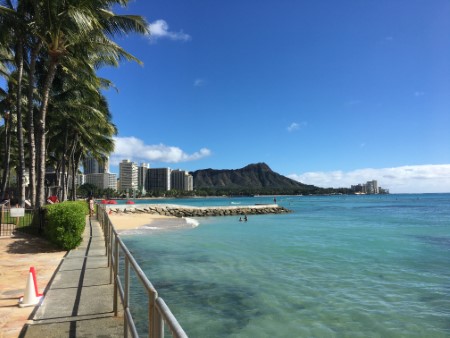 これぞハワイの青い空と青い海、そして、ダイヤモンドヘッド!!