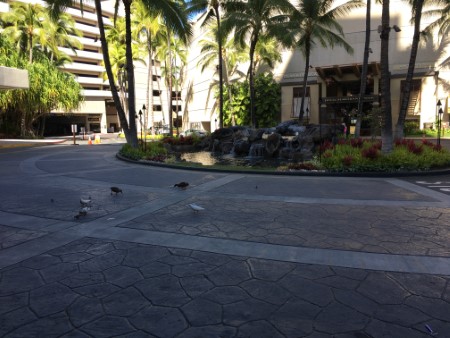 シェラトンワイキキホテルのロビーの大きなクリスマスツリーは、もう片付けられていました。