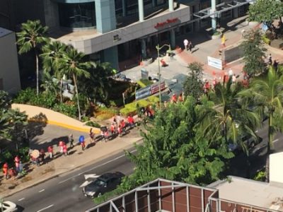 「バンクオブハワイ・ワイキキセンター」の周辺にどんどん人が集まって来ていました。