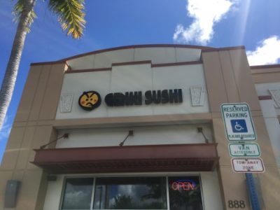 「元気寿司」カパフル通りの「セーフウェイ」の一角にあります。並びには、人気のメキシカン「クロニック・タコス」があります