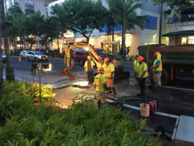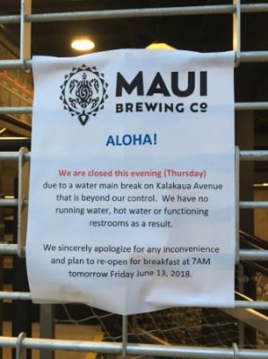 かと思ったら、カラカウア大通りのメインの水道管が壊れたため、断水で今日のみ閉店だそうです。