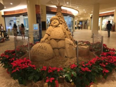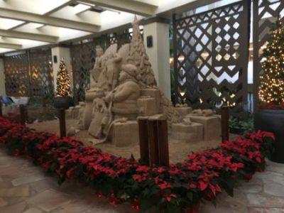 ロビーのサンタさんもポインセチアが置かれて完成!!