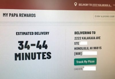 インターネットで注文すると34分から44分の間にオフィスに届きます。
