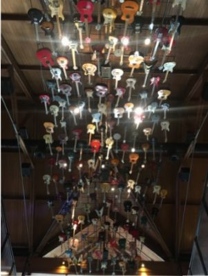 天井のギターの数が凄いです。