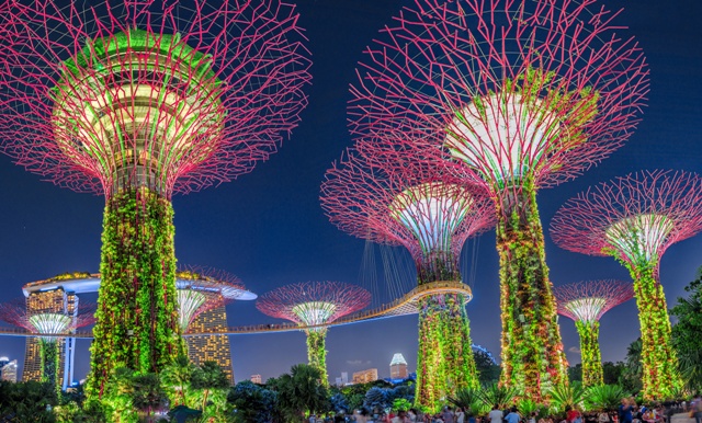 マリーナベイサンズから放たれる眩いレーザー光線と噴水のショー「スぺクトラ」や近未来植物園ガーデンズバイザベイでの光と音が織りなす幻想的なショー「ガーデンラプソディ」をご覧頂きます!
